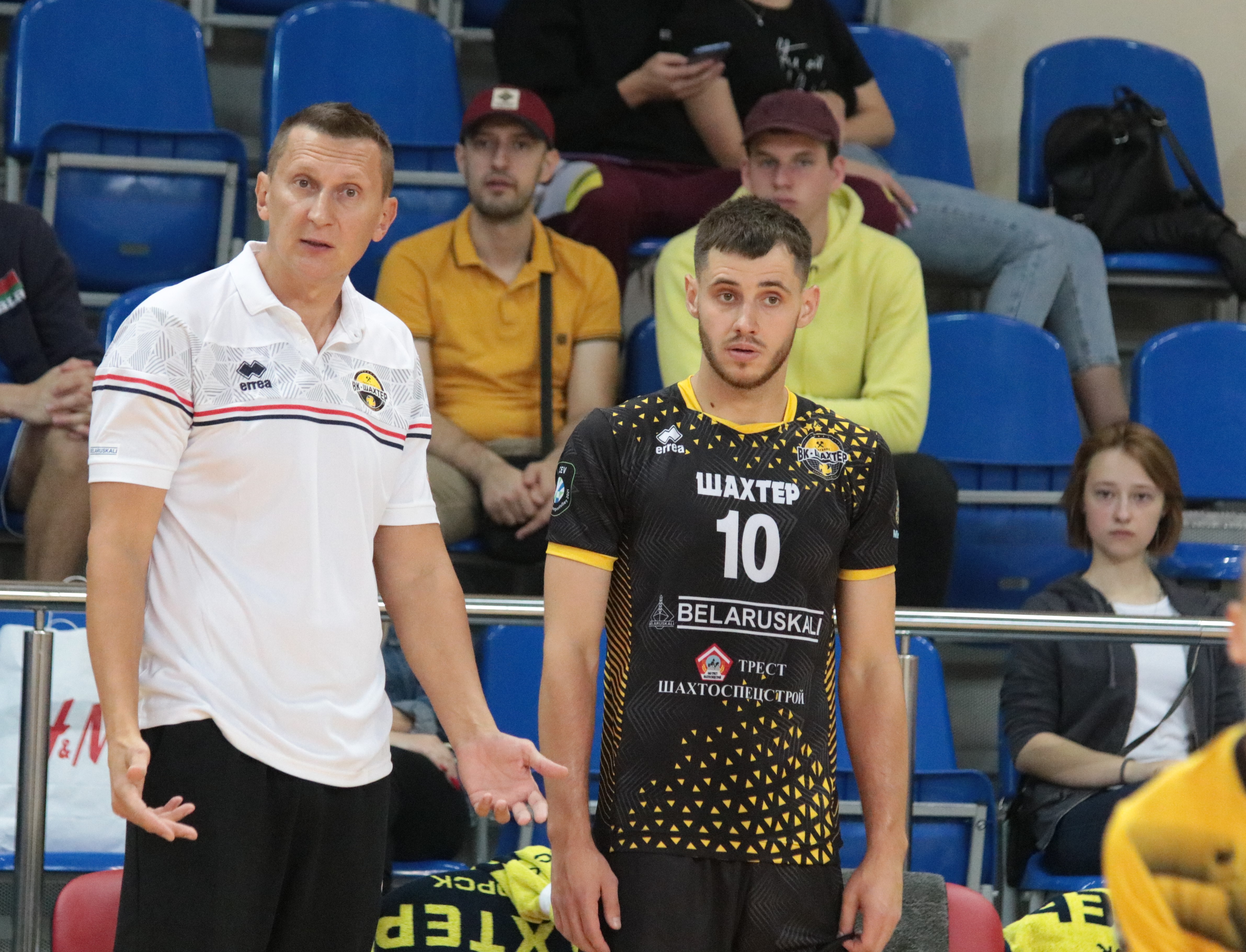 Старт матча получился напряженным, команды использовали по тайм-ауту, а далее солигорцы получили преимущество на подаче. Радюк и Буров хорошо подали, а минчане, неплохо начавшие в атаке, вскоре допустили много ошибок в нападении.