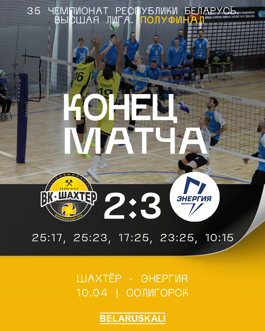 Сегодня уступаем гомельской «Энергии» со счётом 2:3 (25:17, 25:23, 17:25, 23:25, 10:15).